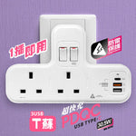 📌將一位電制一插變成 "2個13A三腳插" + USB-C【PD20W】USB-A【QC3.0】 & USB-A【2.1A】